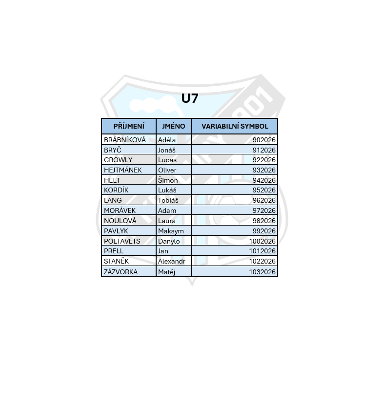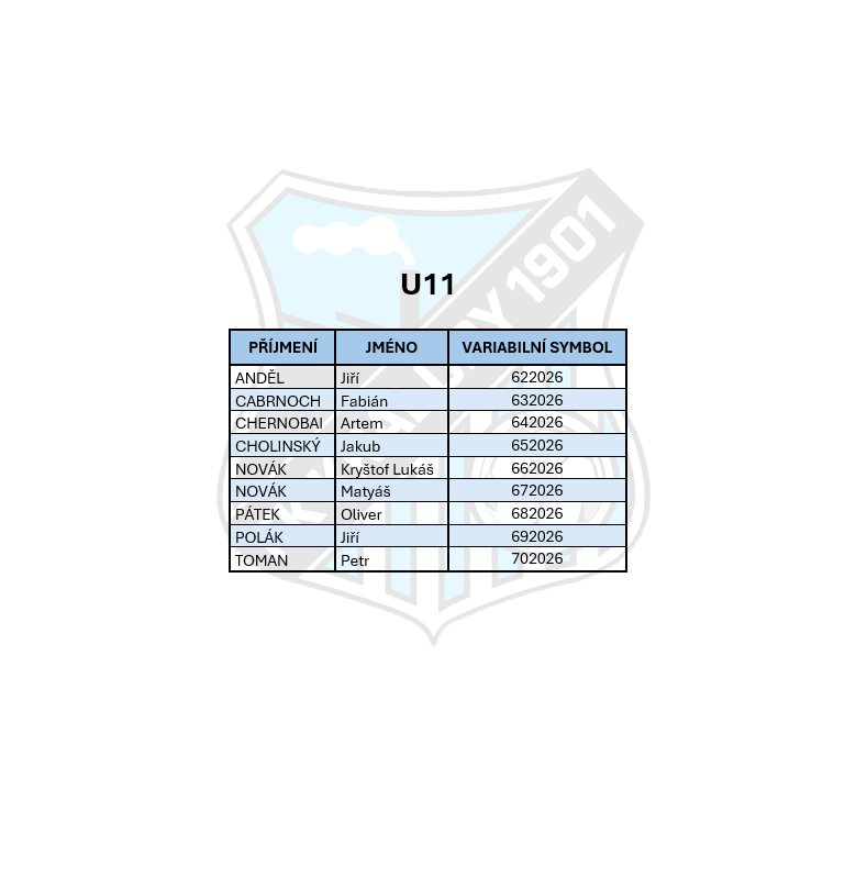Přípravky (U7, U9 a U11) - členské příspěvky