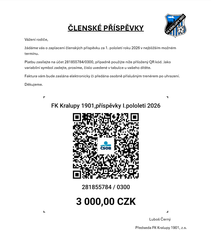 ČLENSKÉ PŘÍSPĚVKY 2026